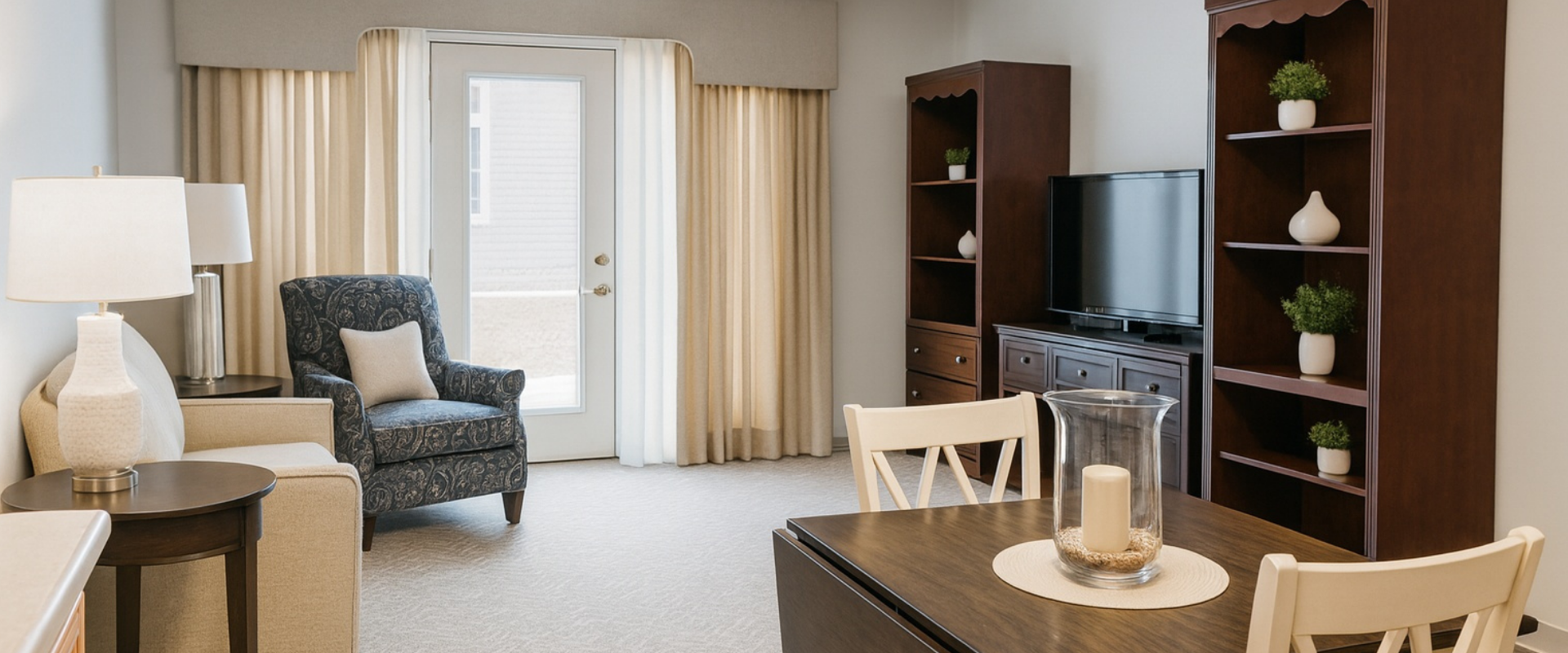Cardinal Grove offers well-designed apartments that include full kitchens, ADA-accessible bathrooms, and private patios. Residents can enjoy amenities such as a fireside lounge, raised garden beds, and an on-site beauty/barber shop.